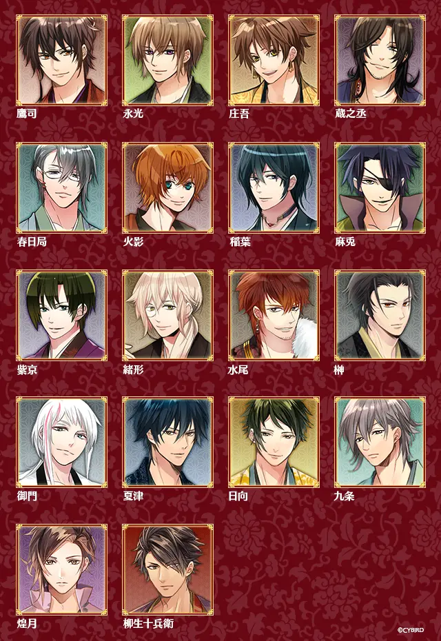 ※本編配信されている鷹司・永光・春日局・火影・稲葉・麻兎・緒形・水尾・御門・夏津・日向・九条の12名のキャラクターが対象となります。